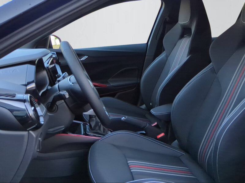 Innenausstattung | Stoff, "Monte Carlo", Sport, Schwarz mit roten & grauen Zierelementen + Interieurdekor in Kunstleder "Carbon" mit roter Umrahmung |